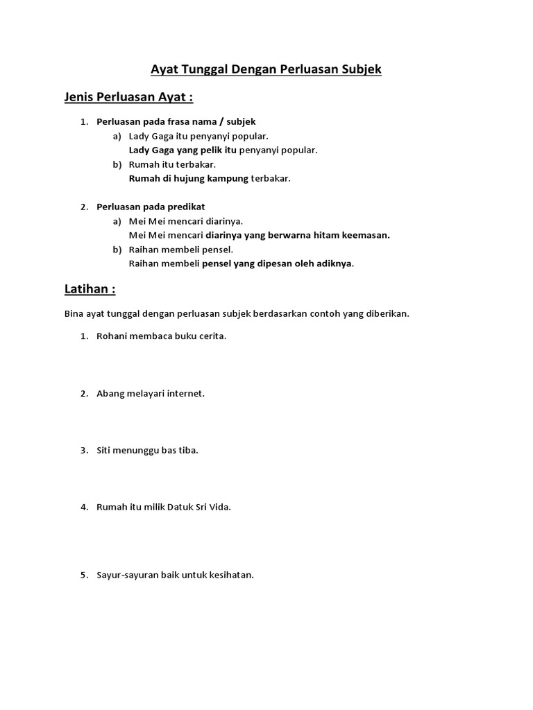 Ayat Tunggal Dengan Perluasan Subjek Pdf
